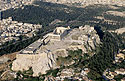 Η είσοδος στον Ιερό Βράχο γίνεται είτε από την πύλη Beule, τη μία από τις δύο πύλες που κατασκευάσθηκαν μετά την επιδρομή των Ερούλων, τον 3ο αι. μ.Χ., είτε από μικρή είσοδο κάτω από τον πύργο του ναού της Αθηνάς Νίκης. Από εκεί ο επισκέπτης αντικρύζει τη δυτική πλευρά των Προπυλαίων, της μνημειώδους εισόδου στο ιερό κατά την κλασική εποχή, έργο του αρχιτέκτονα Μνησικλή. Ο ναός της Αθηνάς Νίκης, που δεσπόζει επάνω στον πύργο στη νότια πλευρά των Προπυλαίων, κτίσθηκε γύρω στο 420 π.Χ. σε σχέδια του αρχιτέκτονα Καλλικράτη. Κοντά στον πύργο του ναού πρέπει να βρισκόταν το ιερό της Πανδήμου Αφροδίτης, από το οποίο σώζεται τμήμα του επιστυλίου. Μπροστά από τη βόρεια πτέρυγα των Προπυλαίων στέκεται ψηλό ορθογώνιο βάθρο, γνωστό ως βάθρο του Αγρίππα, επειδή επάνω του ήταν στημένο το αφιέρωμα του δήμου των Αθηναίων προς το Μάρκο Αγρίππα, γαμπρό του Αυγούστου.